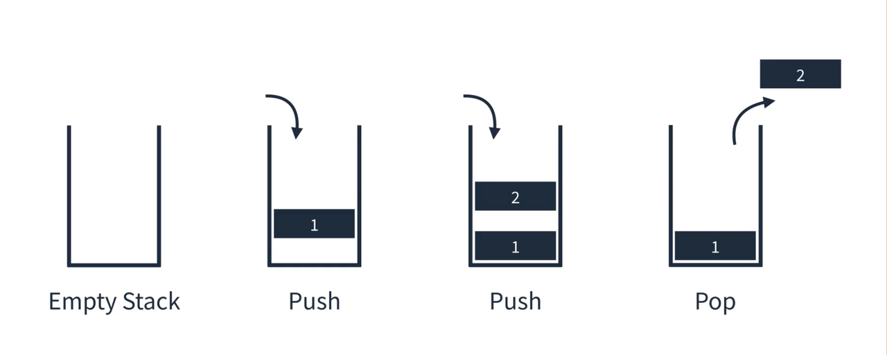 - LIFO (Last In, First Out) = 가장 최근에 저장된 값 다음에 저장되며, 가장 최근에 저장된 값이 먼저 나간다