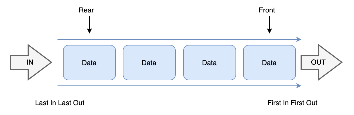 데이터 값을 저장하는 기본적인 구조로 일차원의 선형(linear) 자료 구조 이다.(배열/리스트와 유사하게) 값을 저장하는 연산과 저장된 값을 거내는 연산이 제공 된다.그러나, 매우 제한적인 규칙