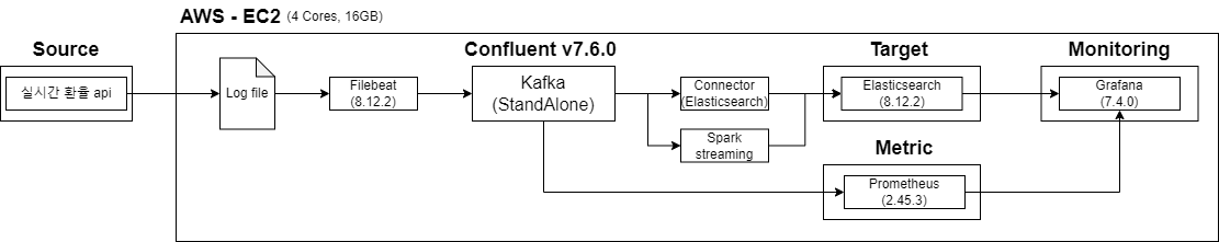 - Filebeat : json log file 형태로 기록되고 있는 실시간 환율 데이터를 수집하여 kafka topic에 저장한다.