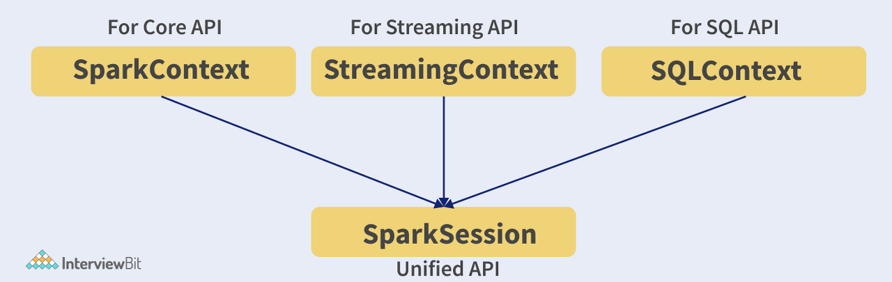 - Spark 2 이상부터는 SQLContext, HiveContext, StreamingContext가 모두 결합된 SparkSession 사용을 권장
