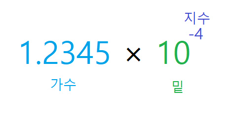 - 실수를 지수부와 가수부로 나누어 표현한다.